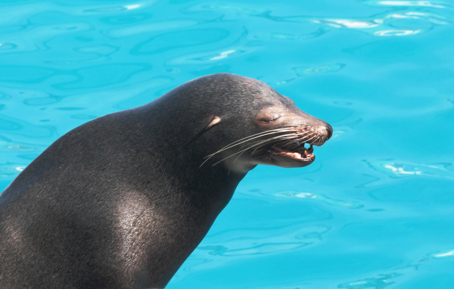海獅的鼻頭以維持濕潤感為健康的指標,不會特別採集鼻孔換氣時的分泌物;不過如果海獅出現濃稠的鼻涕的話,也有可能是感冒的徵兆喔!這時獸醫會用棉花棒採集鼻涕做檢驗。
