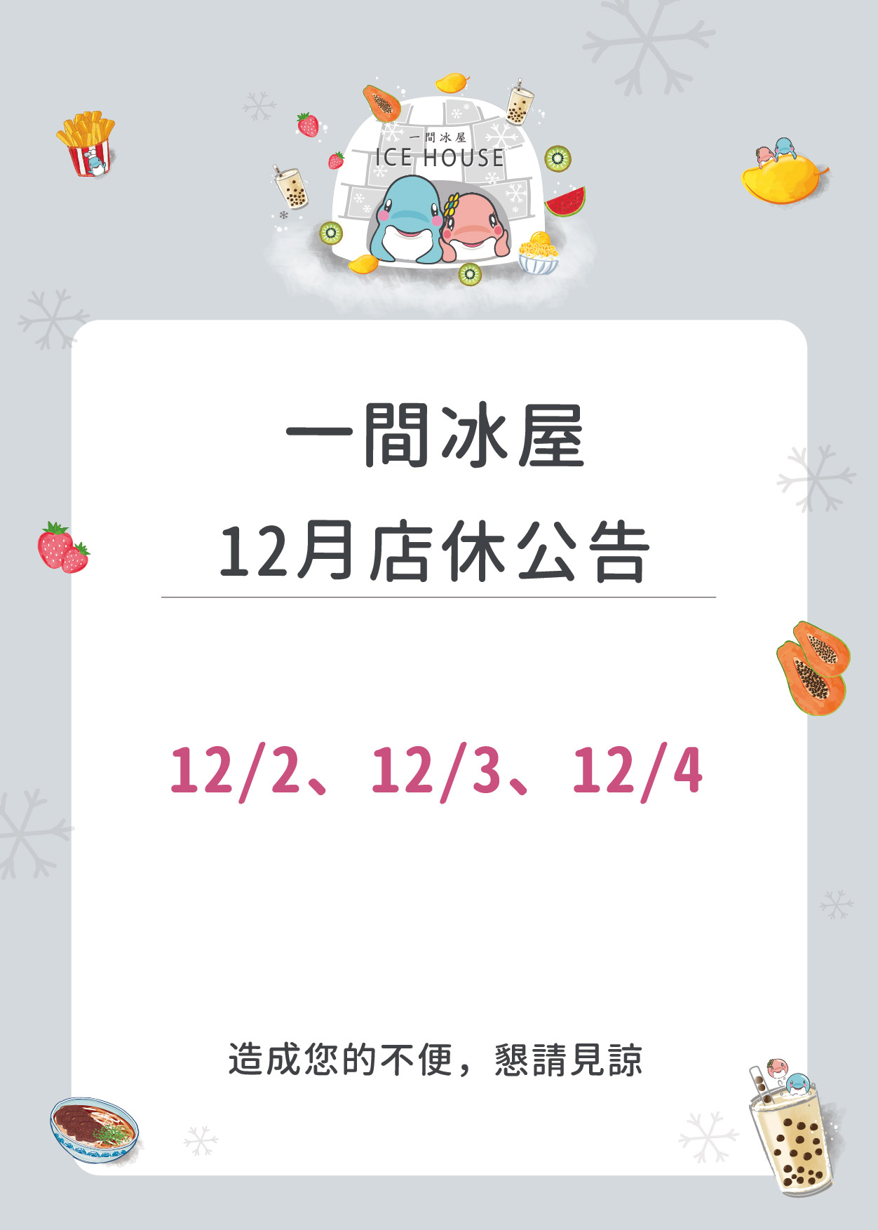 一間冰屋店休公告